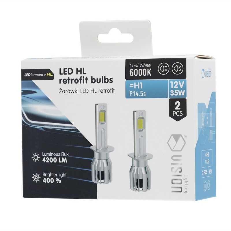 Žárovky VISION LED formance H1 lze snadno nainstalovat místo standardních žárovek, aniž by bylo nutné upravovat elektrický systém vozidla. Jejich rozměry jsou shodné se standardními halogenovými.