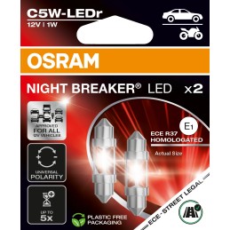 OSRAM NIGHT BREAKER LED C5W ECE je moderní LED žárovka určená jako přímá náhrada klasické žárovky typu C5W. Díky homologaci ECE R37 je schválena pro běžný silniční provoz a lze ji legálně používat v celé Evropě, včetně České republiky, bez nutnosti dalších povolení nebo administrativních úkonů. Pro řidiče to znamená jistotu, že nejde o tuningový nebo off-road produkt, ale o plnohodnotné a schválené řešení.