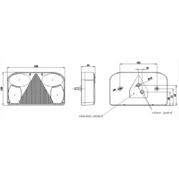 Funkce: obrysové světlo, brzdové světlo, blikač, mlhové světlo, osvětlení SZP (lze zaslepit), odrazové sklo (trojúhelník)