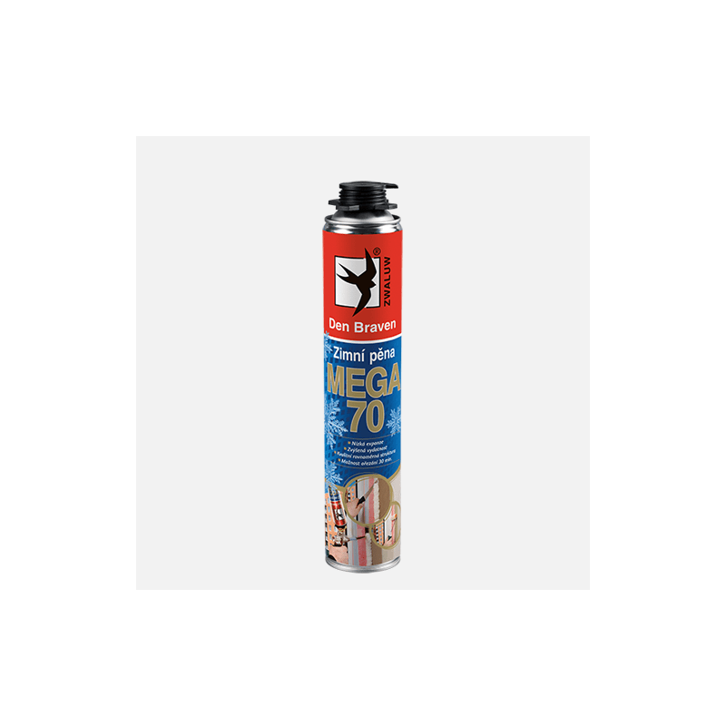 Profesionální, jednosložková montážní a konstrukční polyuretanová pěna, s rozšířenou možností použití při nízkých teplotách pod 0 °C až do -12 °C! Kvalita pěny při teplotách až do +35 °C je nezměněna. Nižší teplota má vliv na dobu vytvrzení a vydatnost. Výborná přilnavost na beton, omítku, zdivo, dřevo, polystyren neměkčené PVC apod. Nulová nutriční hodnota – odolná plísním a roztočům. Vhodná pro vyplňování spár, montáž okenních a dveřních rámů. Izolace potrubních systémů, utěsňování průchodů a dutin ve stěnách. Protihluková izolace v příčkách a instalačních jádrech bytových domů. Tepelná izolace střech. Utěsňování prefabrikovaných dřevěných prvků montovaných staveb apod.