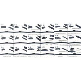 Součástí balení je 18 kusů multifunkčních adaptérů. Instalace adaptéru je velmi snadná a rychlá. Tyto stěrače proto mohou mohou být použity na většině aut.