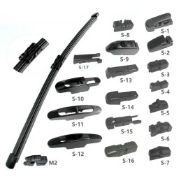Součástí balení je 18 kusů multifunkčních adaptérů. Instalace adaptéru je velmi snadná a rychlá. Tyto stěrače proto mohou mohou být použity na většině aut.