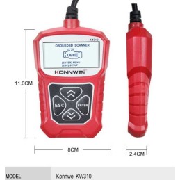 Konnwei KW310 podporuje současné OBD II protokoly, takže na ní lze kontrolovat většinu aut na trhu. Je schopna vymazat diagnostická chybová hlášení (DTCs) a vyresetovat OBD II status. Dokáže vypnout kontrolku vyzývající ke kontrole motoru (MIL) a určit, na jakou poruchu upozorňuje. Je také schopná získat identifikační číslo vozidla (VIN) a kalibrační čísla vozidla (CID a CVN). Nechybí ani živý přenos dat, v rámci kterého je schopna zobrazit například aktuální otáčky, napětí, rychlost, nebo třeba teplotu motoru. Můžete pomocí ní zkontrolovat poruchy týkající se emisí auta (Freeze Frame). Automechanikům se může hodit kontrola I/M připravenosti.