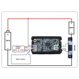 Dvojitý panelový digitální kombinovaný měřák pro napájecí zdroje: červený voltmetr + modrý ampérmetr. |