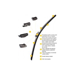 aerodynamická struktura omezuje tlak vzduchu proudícího směrem dolů a tím i zvedání stěračů v důsledku větru při jízdě