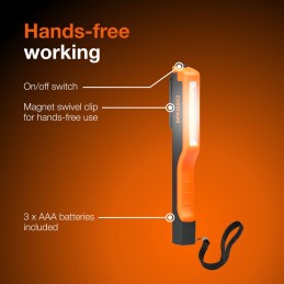 Light up your workspace with the OSRAM LEDinspect POCKET 110 ESSENTIAL. Designed for professionals and DIY enthusiasts, this inspection lamp features a high-performance COB LED that provides a wide, bright beam ideal for vehicle maintenance and garage work. Thanks to the practical rotating clip and magnetic base, you can attach the lamp and have your hands free, making it easier to work in tight or hard-to-reach spaces. The compact and lightweight design ensures easy handling and storage. Whether you're working under the hood or in a dark corner, the OSRAM LEDinspect POCKET 110 ESSENTIAL ensures that you never have to struggle with poor lighting again.