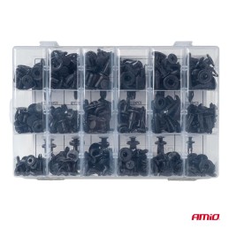 Professional set of 190 clips and mounting pins designed for car body repair and service. Contains various clips, pins and pins that allow for quick and secure fastening of body panels, moldings, plastic covers and other body elements.
