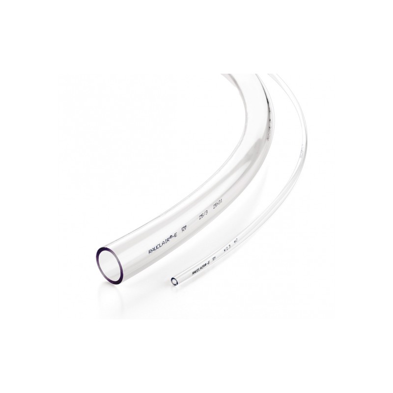 The hose is clear, transparent, flexible, highly resistant to chemicals, resistant to aging and especially resistant to abrasion.