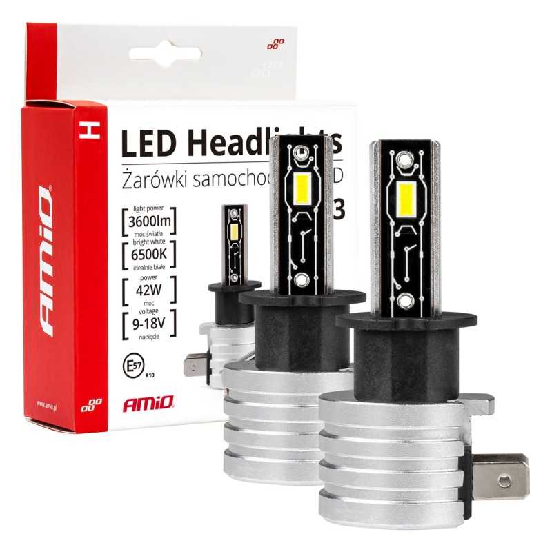 H3 AMiO H series LED bulbs are characterized by very high quality. The proposed product emits brighter and more concentrated light, which allows for better visibility of the road in limited light conditions such as dusk, fog or rain. Light sources produced using CSP technology are more efficient in the process of converting electricity into visible light compared to traditional halogen bulbs. LED bulbs are more resistant to shocks and vibrations, which means they last longer than halogen bulbs.