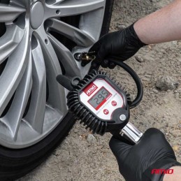 The professional inflation gun equipped with a precise digital pressure gauge is an indispensable tool in every workshop, tire service and garage. It allows for quick and accurate measurement and regulation of tire pressure up to 16 bar.
