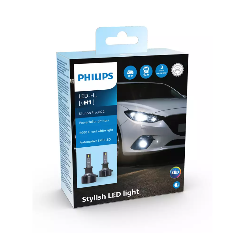 For a modern, cool white light, upgrade your car's headlights with Philips LED Ultinon Pro3022 bulbs. These excellent bulbs feature LED chips with a color temperature of 6,000K and are Designed to ensure maximum driving comfort. You will be able to see obstacles faster, drive with more confidence, and at the same time avoid dazzling other road users. Get performance and style with our Philips LED Ultinon Pro3022 bulbs